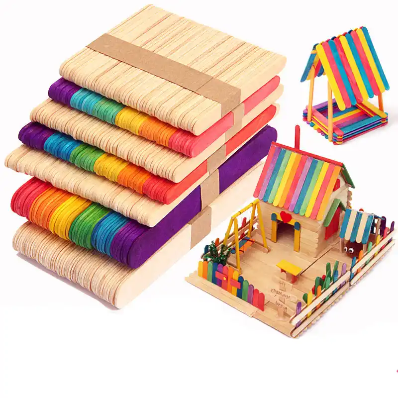 50pcs Colored Wood Craft Sticks Wooden Ice Cream Sticks Kids Diy